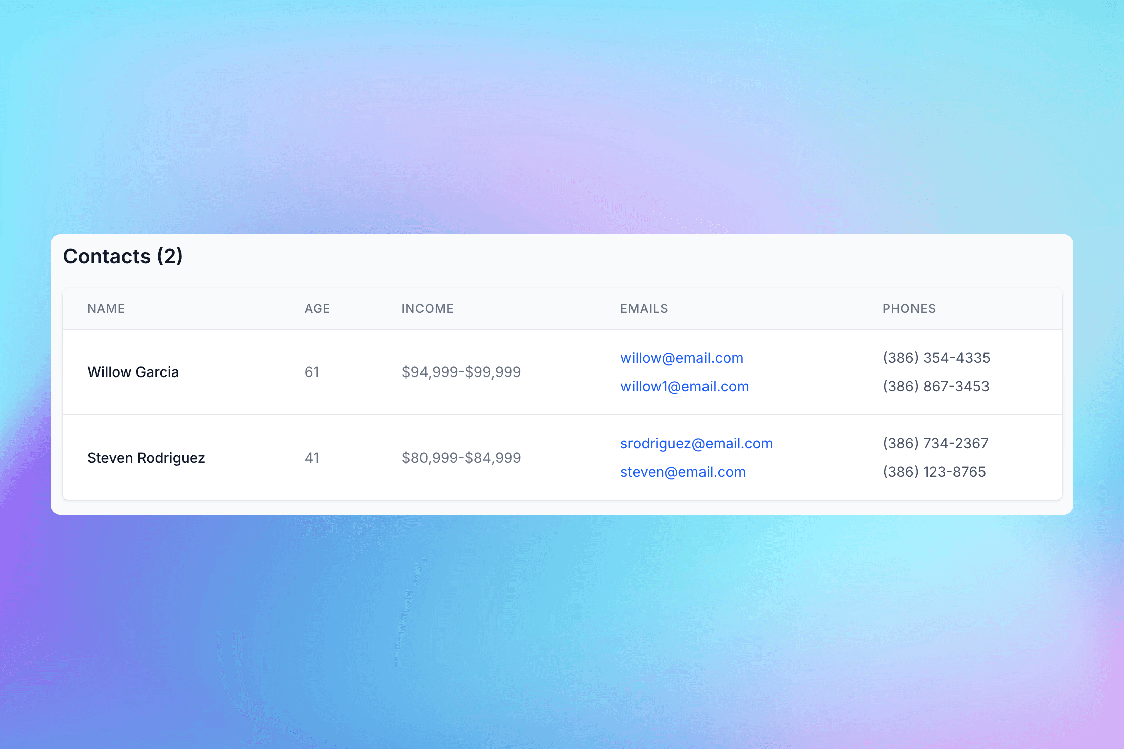 Get high-quality homeowner details, such as phone numbers, emails, age, and income — everything you need to make the first contact.