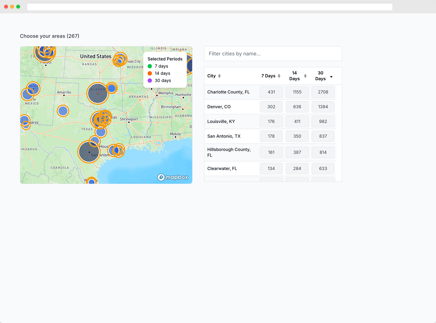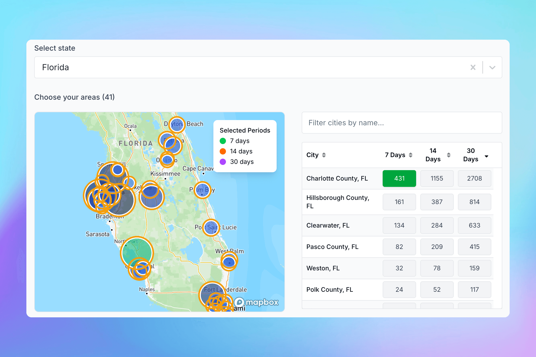 Access a fresh batch of the latest permits in your chosen markets. Perfect for market analysis, lead generation, and immediate outreach.