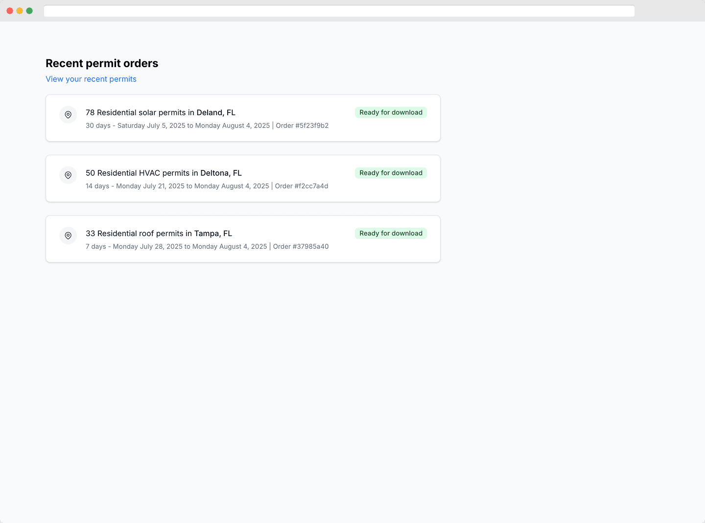 Right now, we cover Solar, HVAC, and Roofing permits — with more trades coming soon.