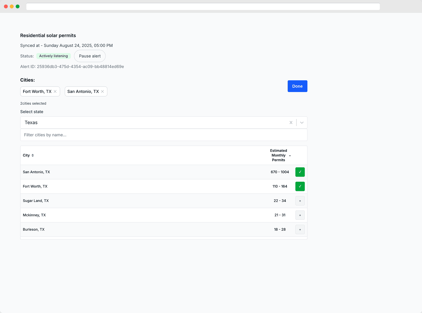Discover the latest solar, HVAC, & roofing permits in your market — with full project and contact details so you can follow up before your competition.